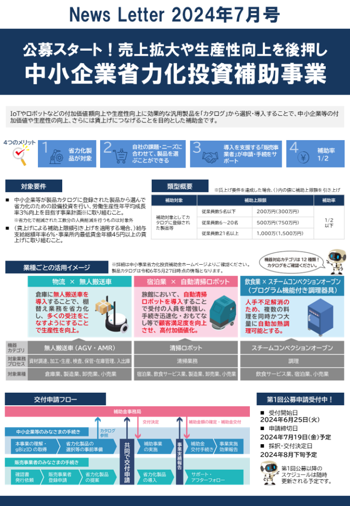 「公募スタート!売上拡大や生産性向上を後押し中小企業省力化投資補助事業」です。