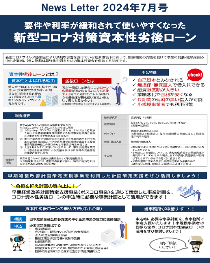 「要件や利率が緩和されて使いやすくなった新型コロナ対策資本性劣後ローン」です。