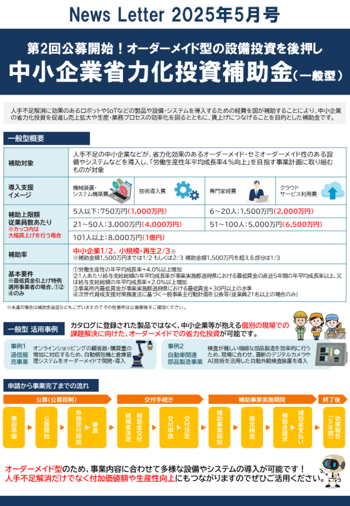 第2回公募開始!オーダーメイド型の設備投資を後押し 中小企業省力化投資補助金(一般型)