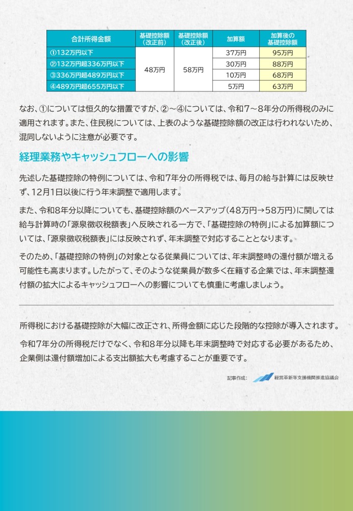 基礎控除の改正は令和7年分の所得税から適用されることとなり、