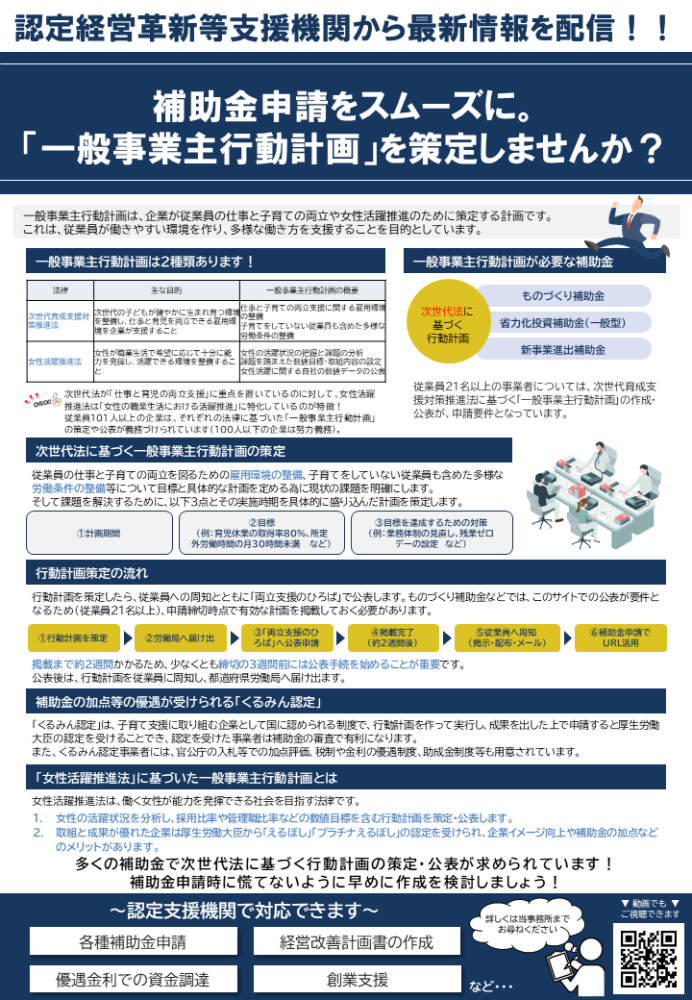 補助金申請をスムーズに。 『一般事業主行動計画』を策定しませんか?
