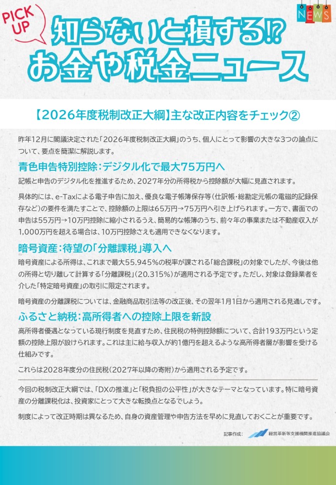 『<2026年度税制改正大綱>主な改正内容をチェック➁』です。