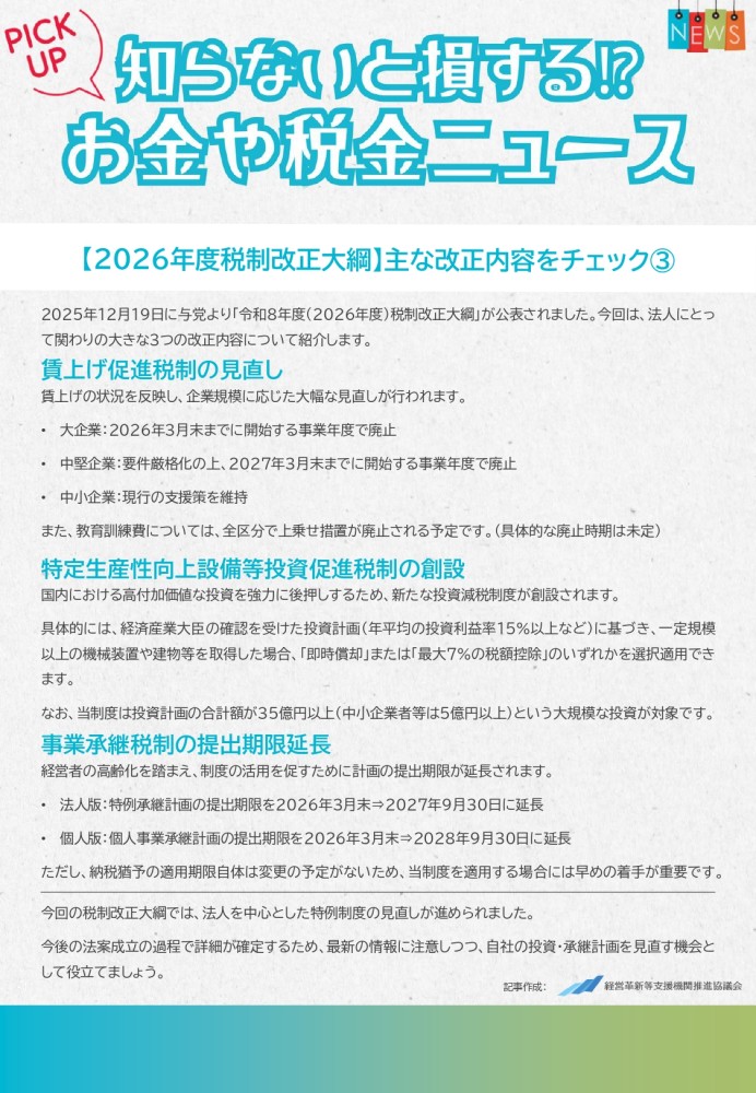 『<2026年度税制改正大綱>主な改正内容をチェック③』です。