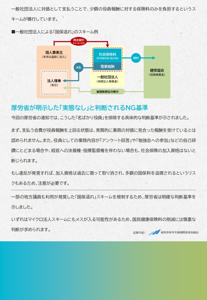 一般社団法人を用いた「国保逃れ」への包囲網が強化へ』です。